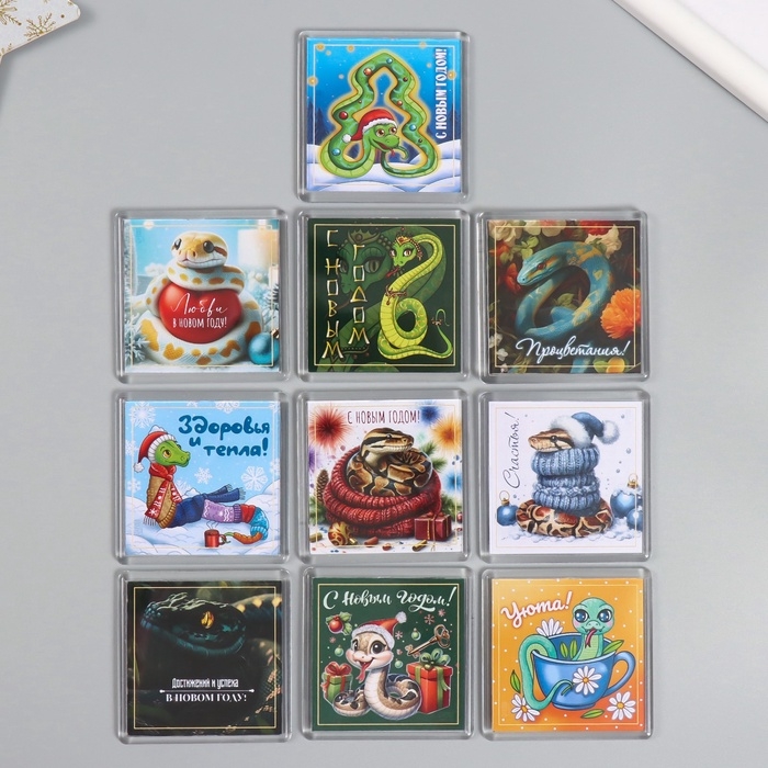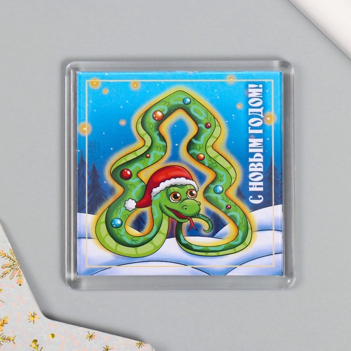 Новогодний магнит акрил "Змея. Микс" 5,7х5,7 см МИКС 10 видов