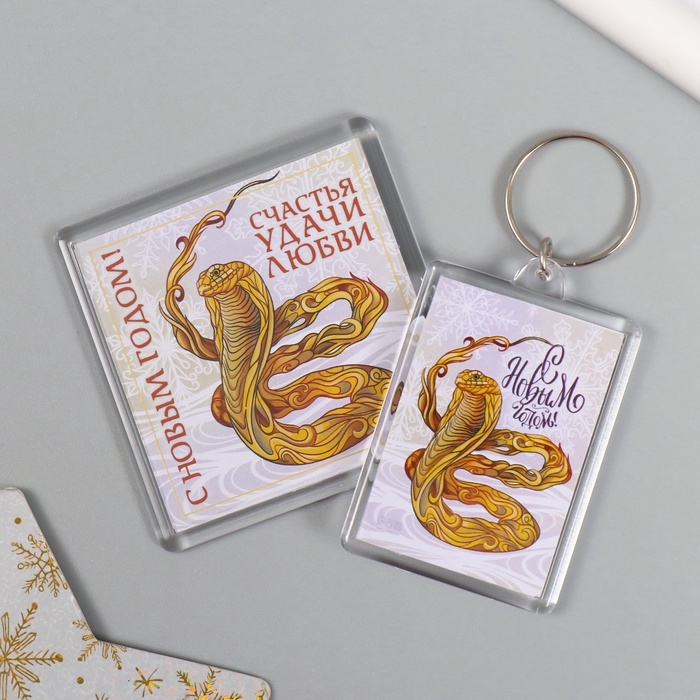 Новогодний набор "Змея. Линии" (брелок 3,5х5 см, Новогодний магнит 5,7х5,7 см)