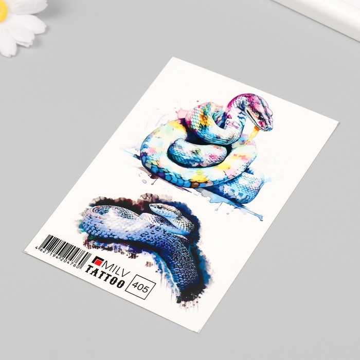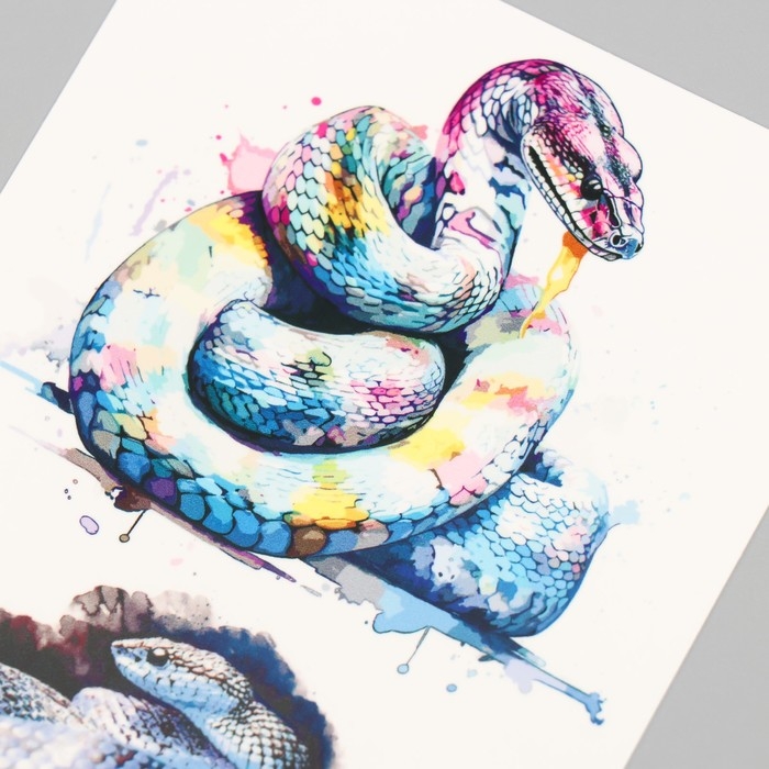 Новогодня татуировка на тело "Разноцветная змея" 10х15 см