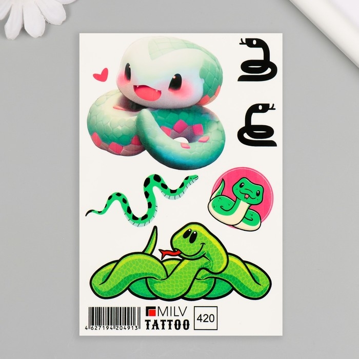 Новогодня татуировка на тело "Змейки" 10х15 см