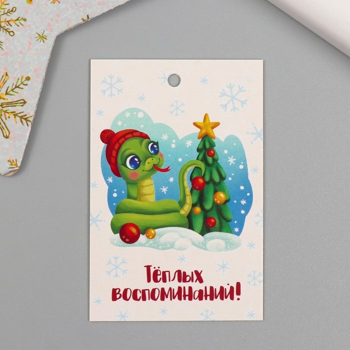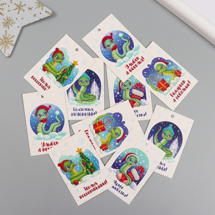 Новогодняя бирка картон "Сказочных мгновений!" Новогодний набор 10 шт (5 видов) 4х6 см