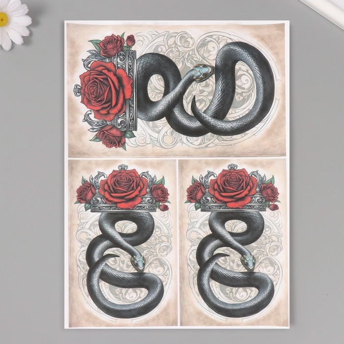 Новогодняя декупажная карта "Черная змея и роза", плотность 45 г/м2, формат А4