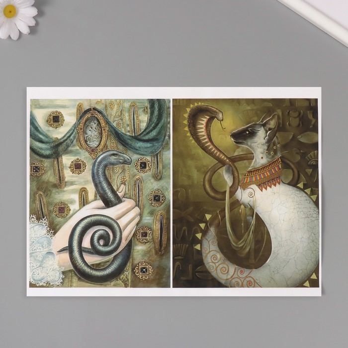Новогодняя декупажная карта "Картина со змеей", плотность 45 г/м2, формат А4