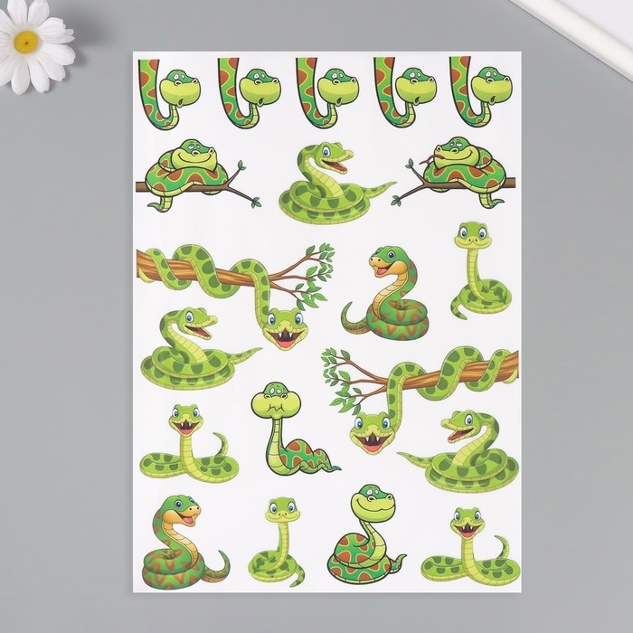 Новогодняя декупажная карта "Змеи мультяшные", плотность 45 г/м2, формат А4