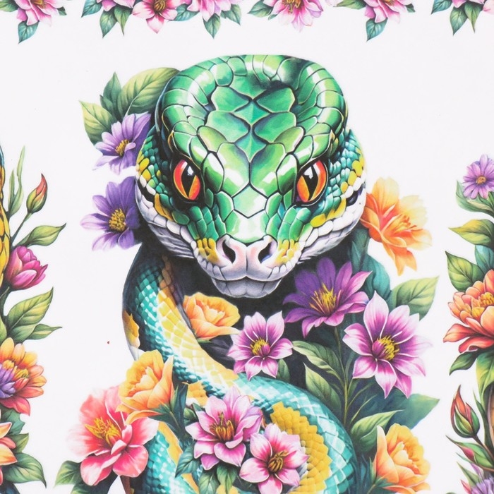 Новогодняя декупажная карта "Змеи в цветах", плотность 45 г/м2, формат А4