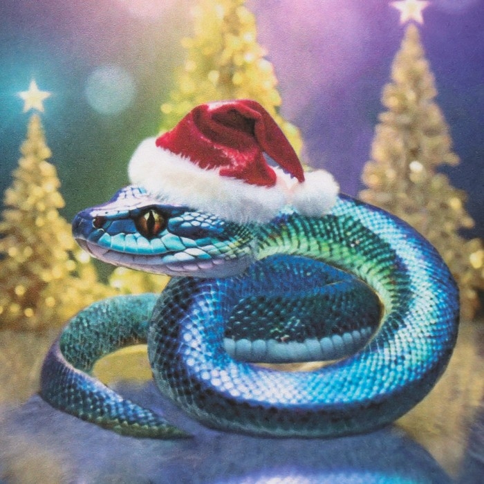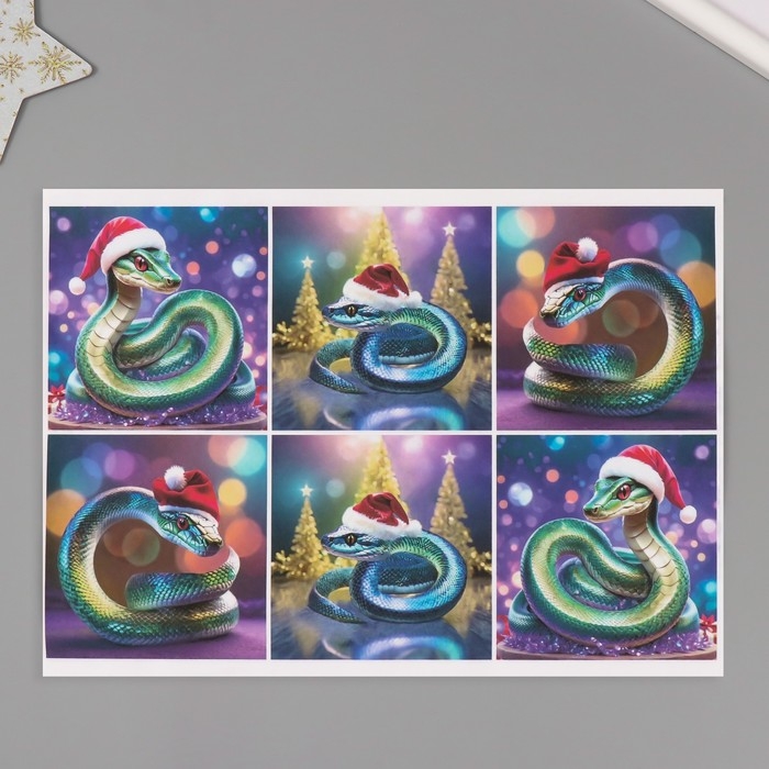 Новогодняя декупажная карта "Змеи в новогодних шапках", плотность 45 г/м2, формат А4