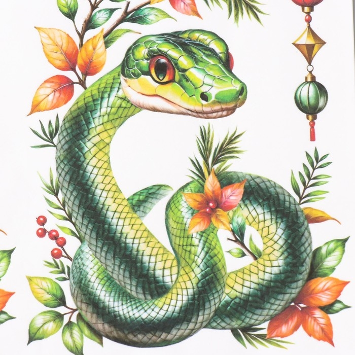 Новогодняя декупажная карта "Змея с веточкой", плотность 45 г/м2, формат А4