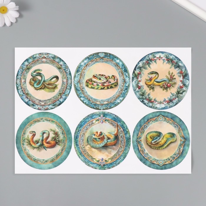 Новогодняя декупажная карта "Змея жетон", плотность 45 г/м2, формат А4