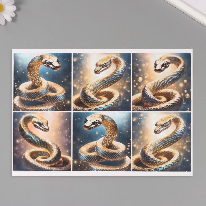 Новогодняя декупажная карта "Золотая змея", плотность 45 г/м2, формат А4