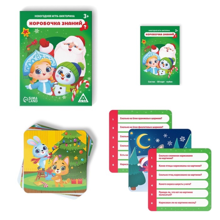 Новогодняя настольная игра-викторина «Новый год: Коробочка знаний», 50 карт, 3+
