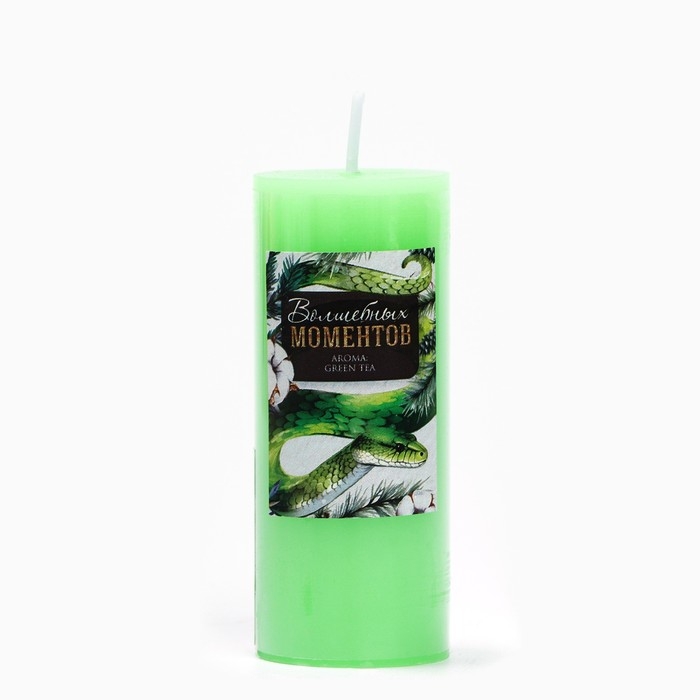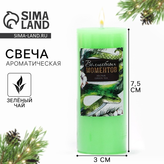 Новогодняя свеча-столбик интерьерная «Новый год: Волшебных моментов», зеленый чай, 3 x 7,5 см