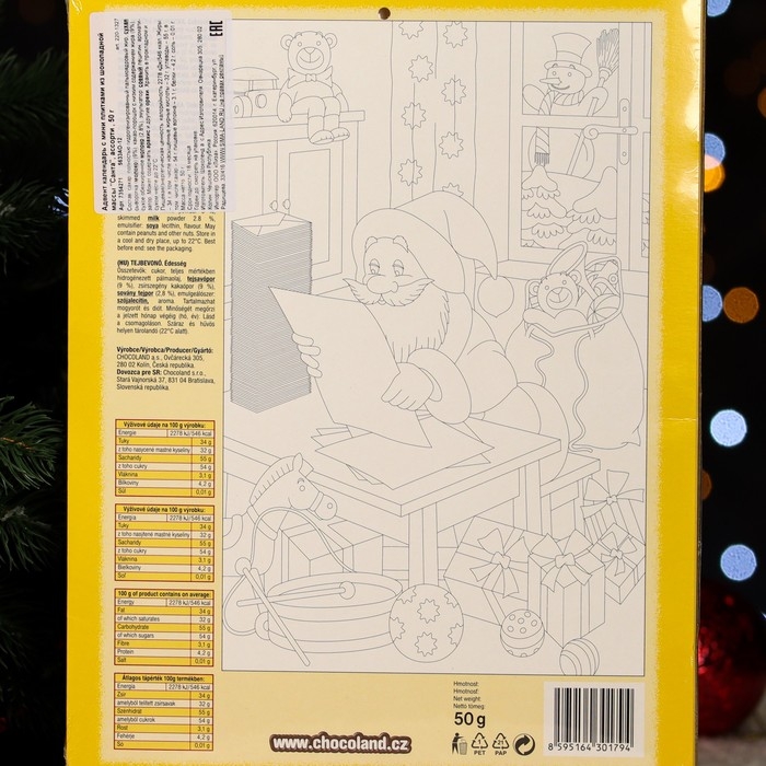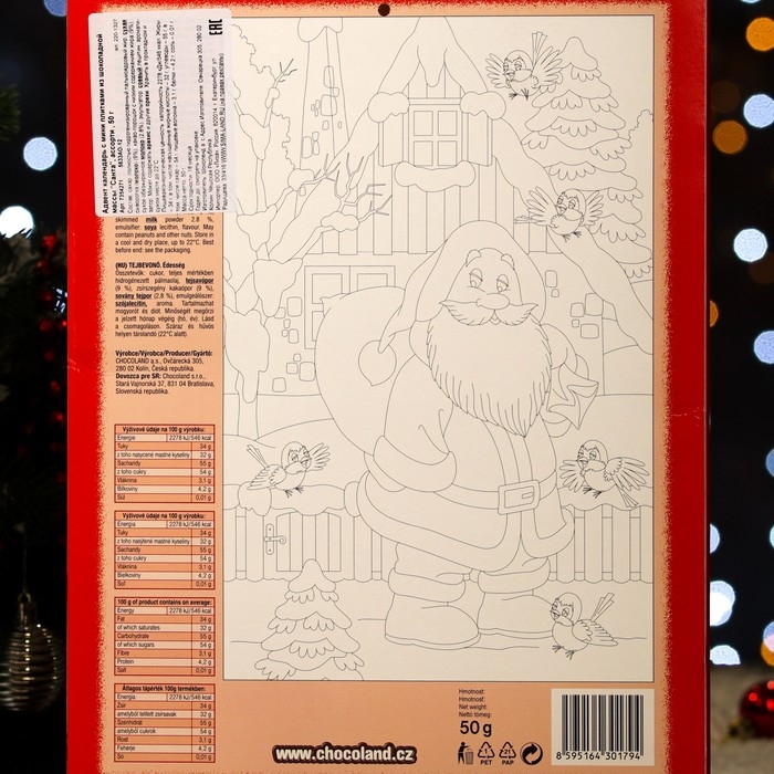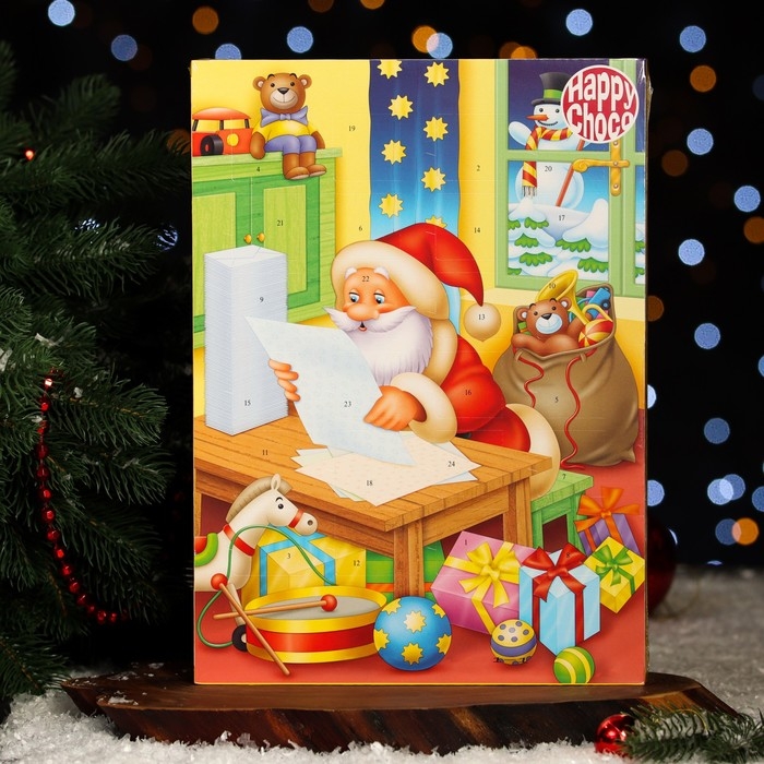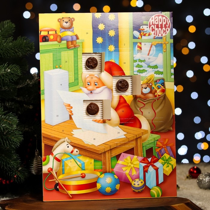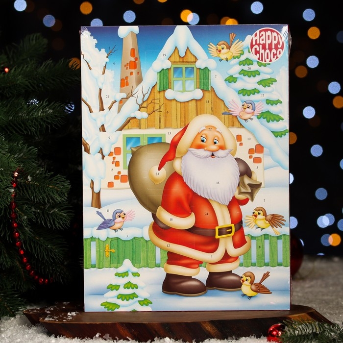Новый год. Адвент-календарь с мини-плитками из молочного шоколада "Санта", ассорти, 50 г