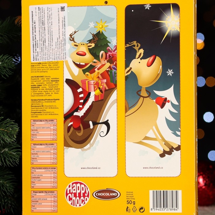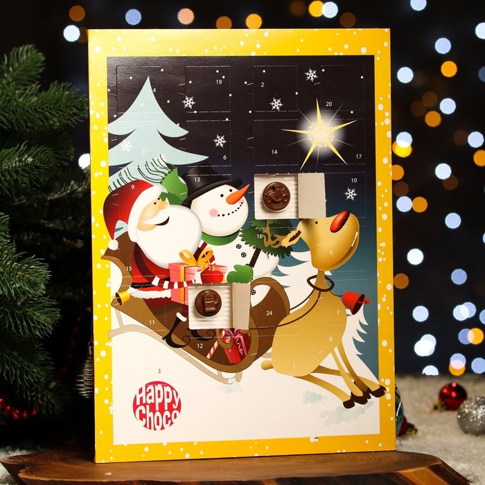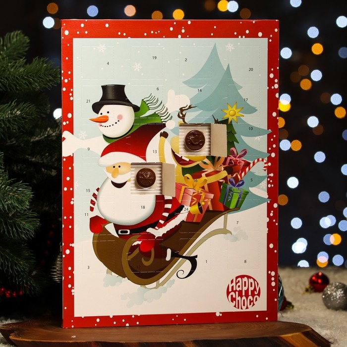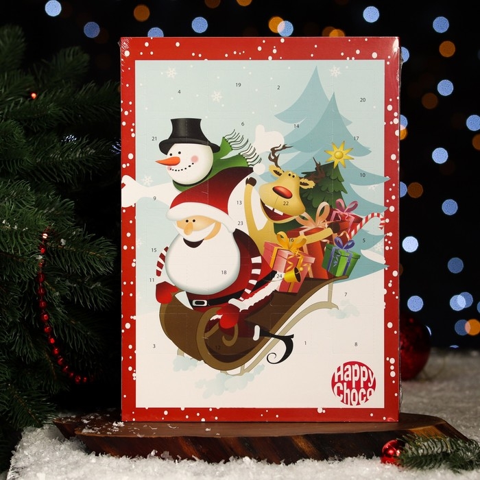 Новый год. Адвент-календарь с мини-плитками из молочного шоколада "Счастливый санта", МИКС, 50 г