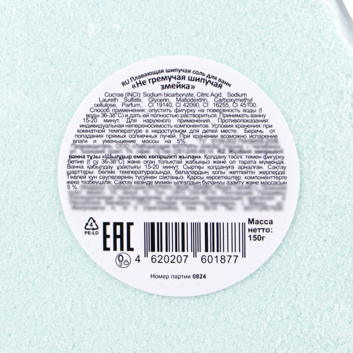 - Бомбочка выполнена в виде изящной змеи, которая при погружении в воду начинает шипеть и извиваться, создавая впечатление, будто ожила настоящая сказочная змея.