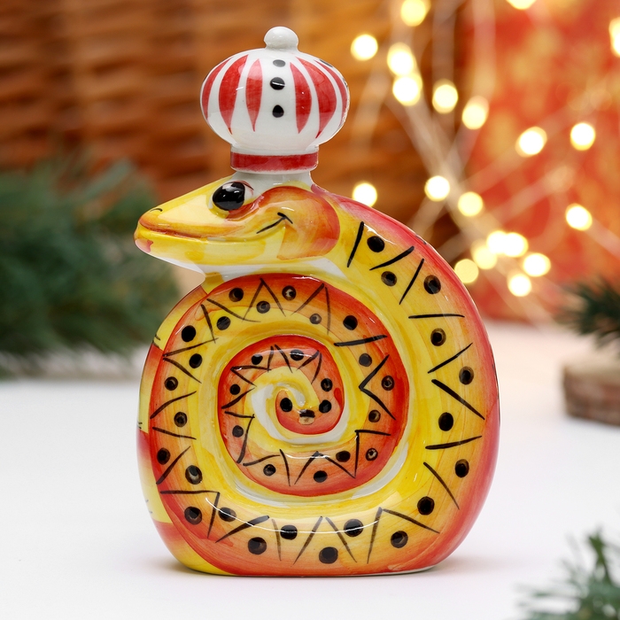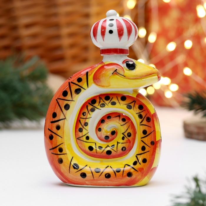 Новый год. Фляга фарфоровая символ года "Змей Шкалик Московский", 13 см, 100 мл