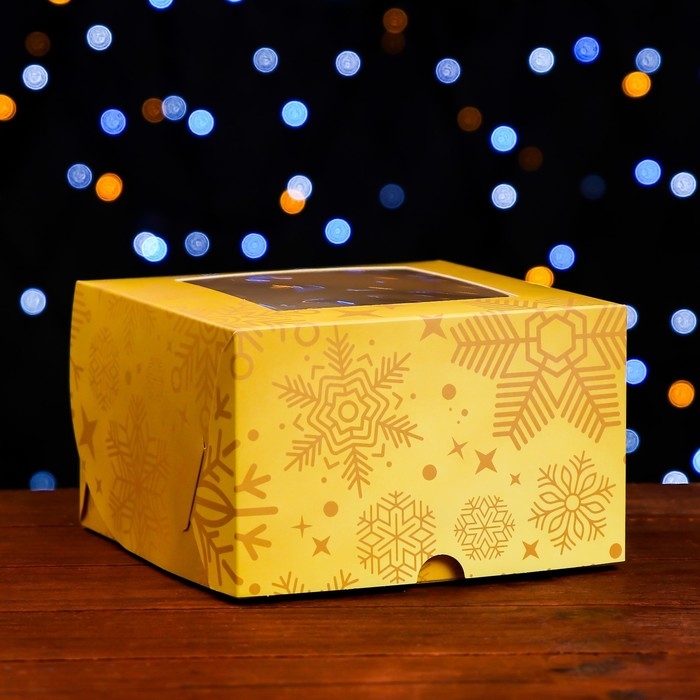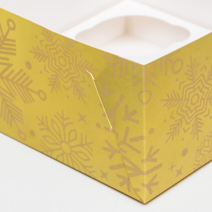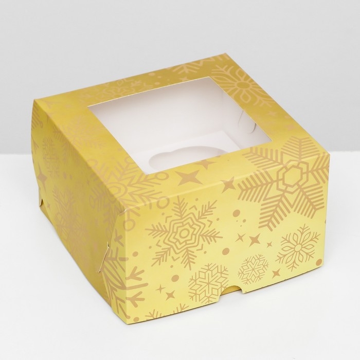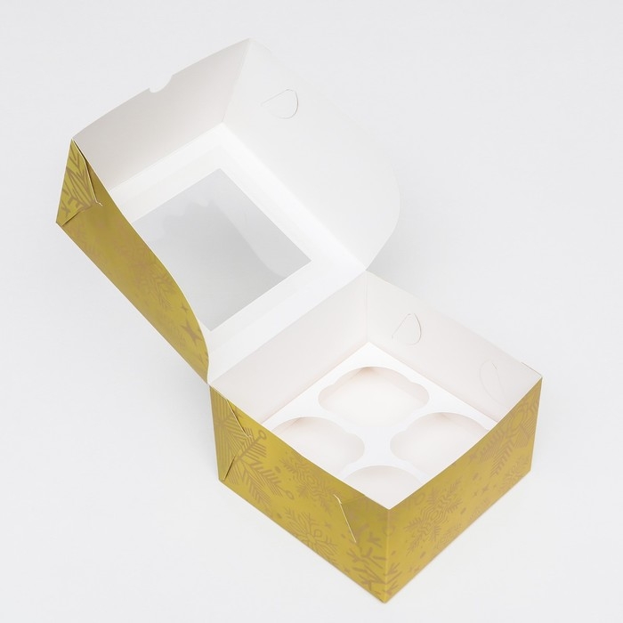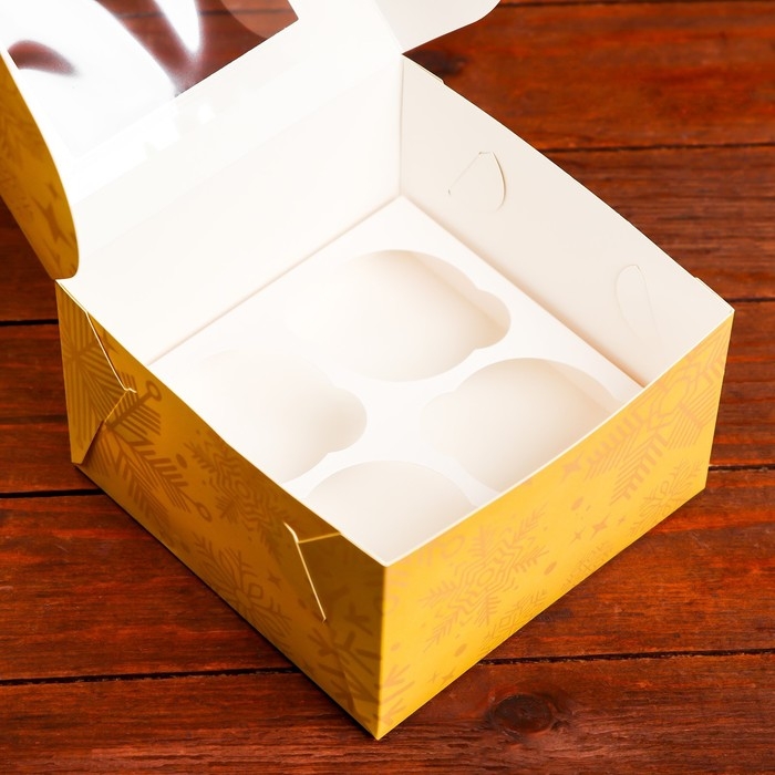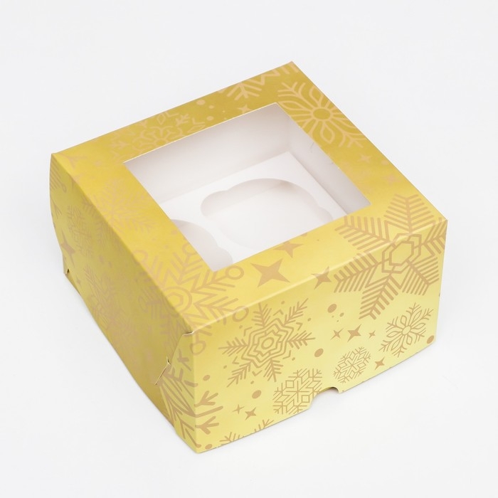 Новый год. Коробка для 4 капкейка с окном "Новогодний градиент", 16 х 16 х 10 см, упаковка