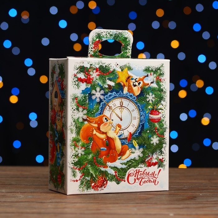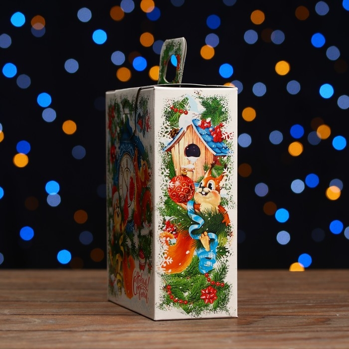 Новый год. Коробка подарочная "Белки и стрелки", 15,5 х 7 х 18,5 см.