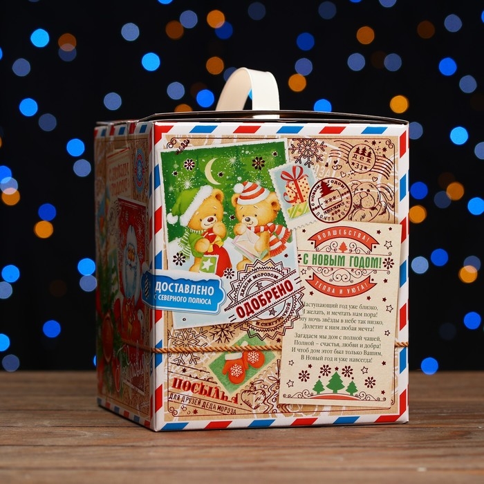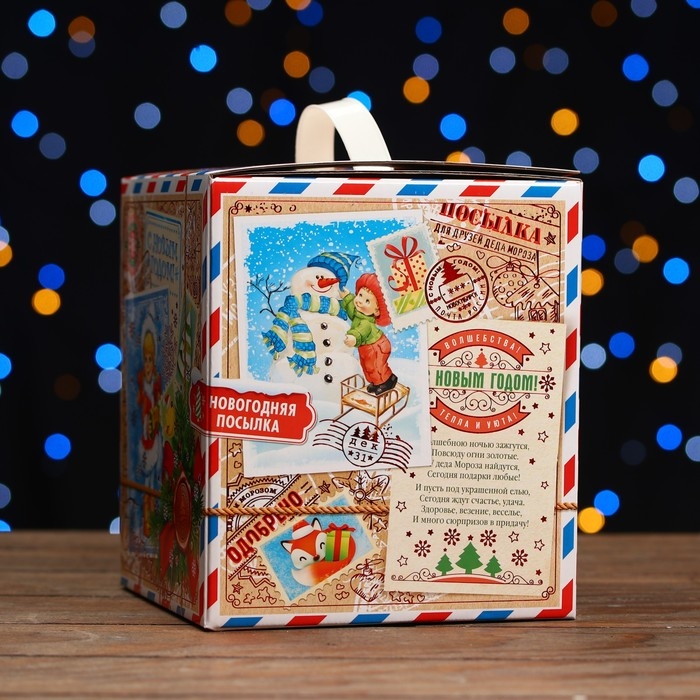 Новый год. Коробка подарочная "Деревянная посылка", 16,8 х 19 х 16,8 см.