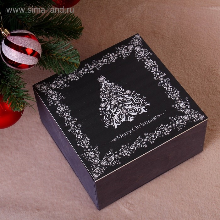 Новый год. Коробка подарочная "Merry Christmas, c ёлкой", серая, 20×20×10 см
