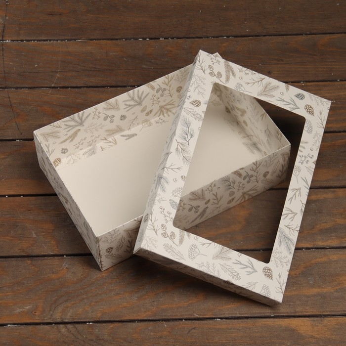 Коробка складная, крышка-дно, "Цветочки", 24 х 17 х 8 см с окном