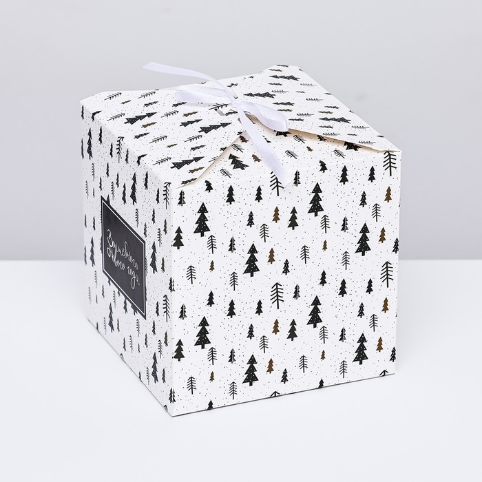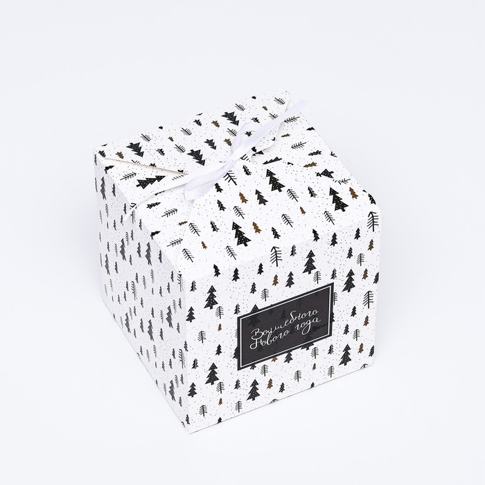 Новый год. Коробка складная, подарочная новогодняя "Волшебного Нового Года" 14 х 14 х 14 см.