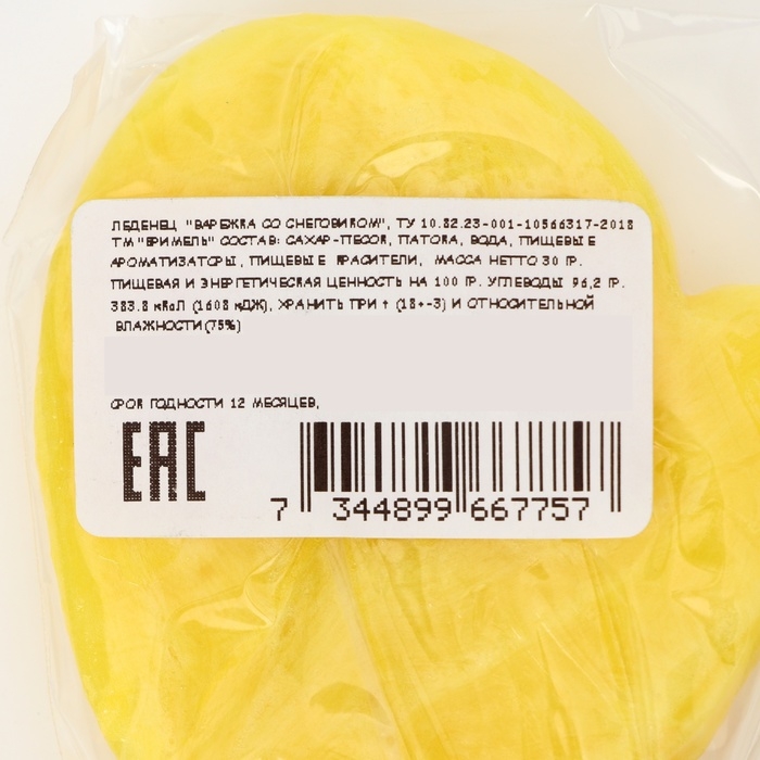 Новый год. Леденец с печатью "Снеговик 2025", 30 г