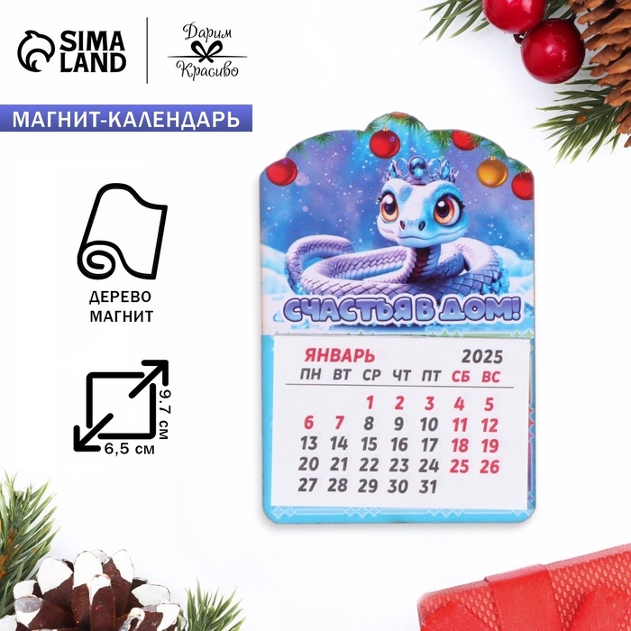 Новый год.Магнит новогодний календарь"Символ года 2025.Счастья в дом", 12 месяцев, подкова