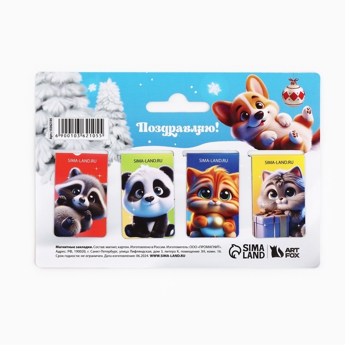 Новый год. Магнитные закладки «Новогодние пушистики», 4 шт мини