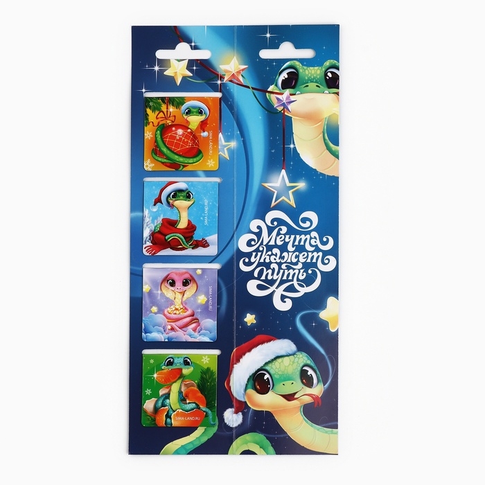 Новый год. Магнитные закладки «С Новым годом! Загадай желание», на открытке, 4 шт