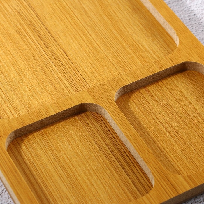 Новогодняя формовая менажница - это стильный и функциональный аксессуар, который станет неотъемлемой частью вашего праздничного стола, добавив ему изысканности и шарма. Также является отличным вариантом подарка для ваших друзей и близких. Изготовлена из прочного и экологически чистого ДСП, что гарантирует долговечность и безопасность использования.
