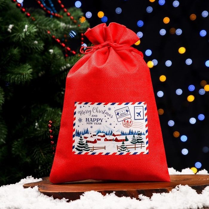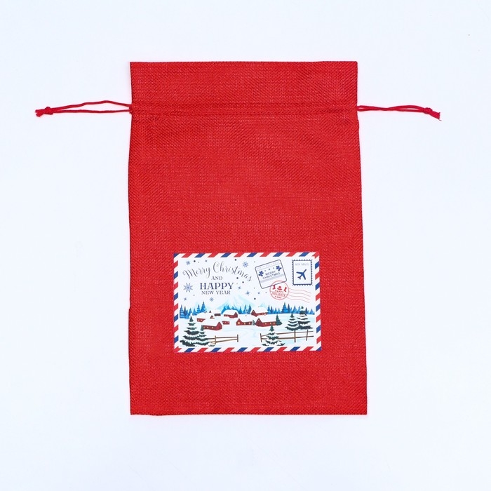 Новый год. Мешок подарочный с термонаклейкой, 20 х 30 см, красный