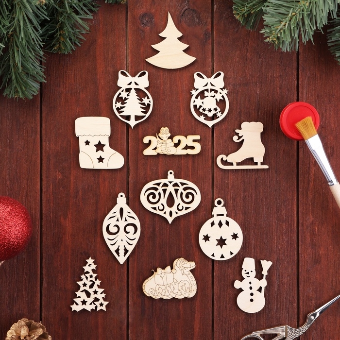 Новый год. Набор заготовок для творчества символ года "Новогодние украшения 2025",12 шт,4,5 х 4,5см