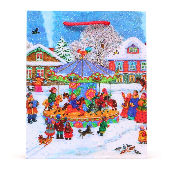 Новый год. Пакет подарочный "Карусель", 18 х 22,3 х 10 см.