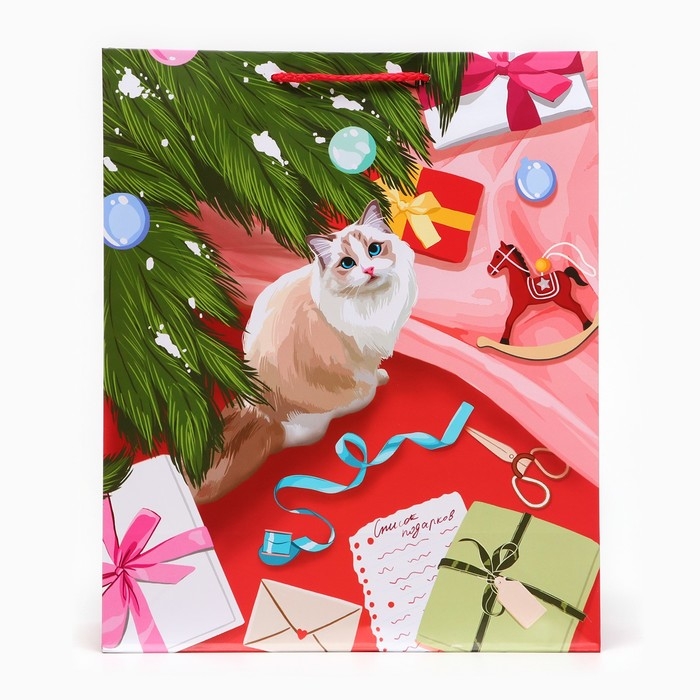 Новый год. Пакет подарочный "Кошечка", 26 х 32 х 12 см.