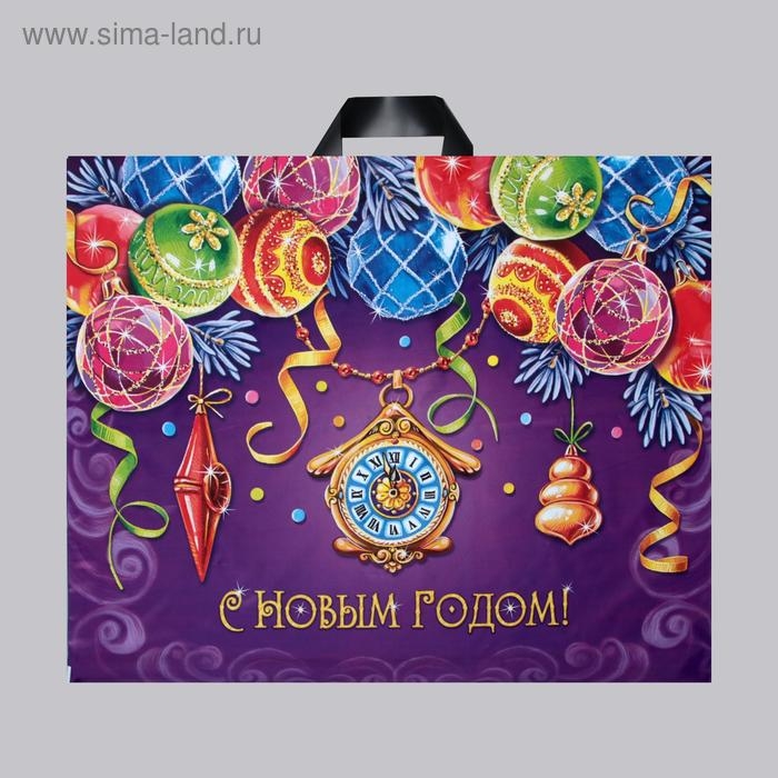 Новый год. Пакет "Старинные часы", полиэтиленовый с петлевой ручкой, 60х50 см.