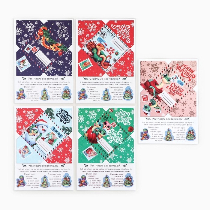 Этот набор включает в себя 5 писем от Деда Мороза, каждое из которых содержит загадку или задание, связанное с поиском подарка.