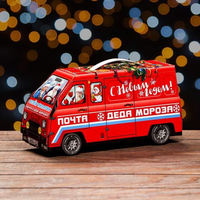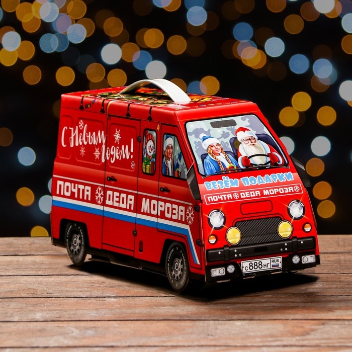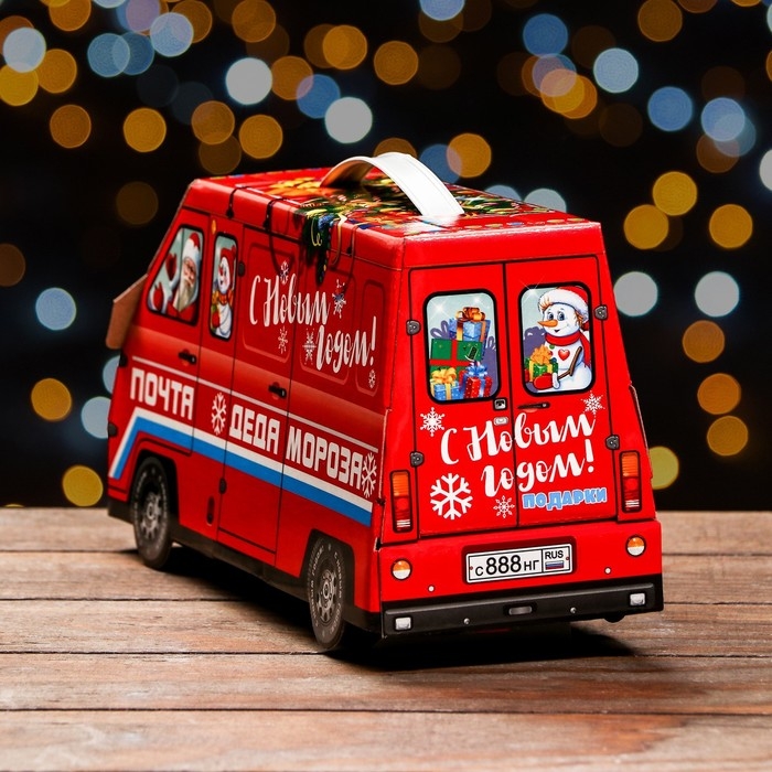 Новый год. Подарочная коробка "Автопочта" 14,3 х 27 х 10 см.