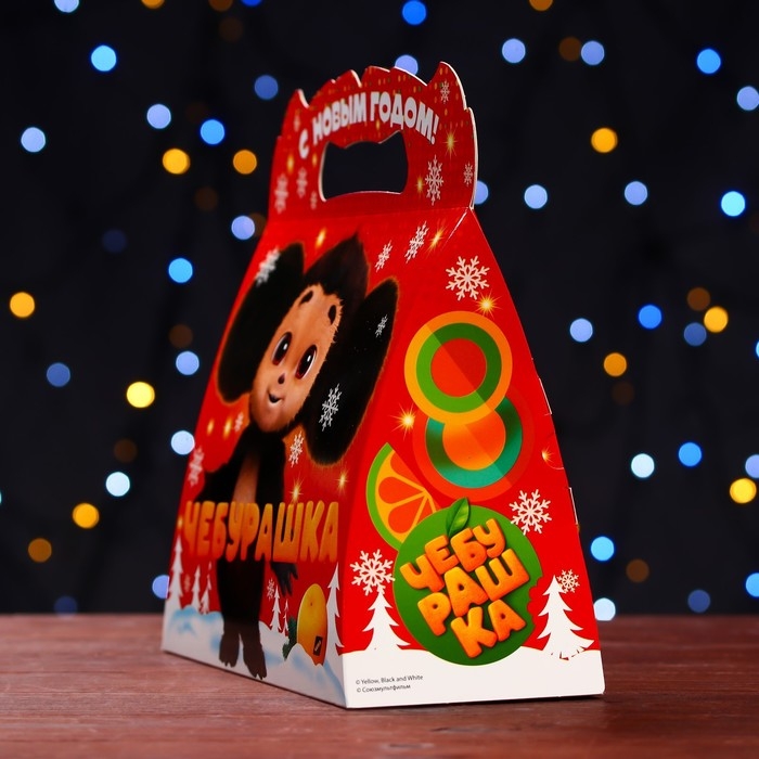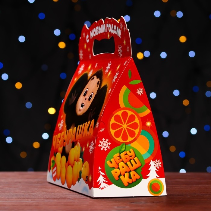 Новый год. Подарочная коробка "Чебурашка", Сумочка , 25,5 х 11 х 20 см.
