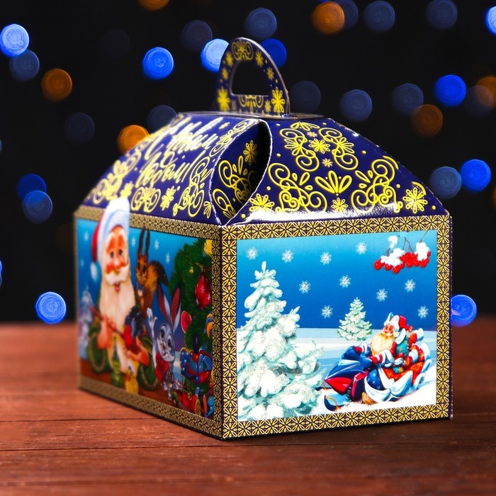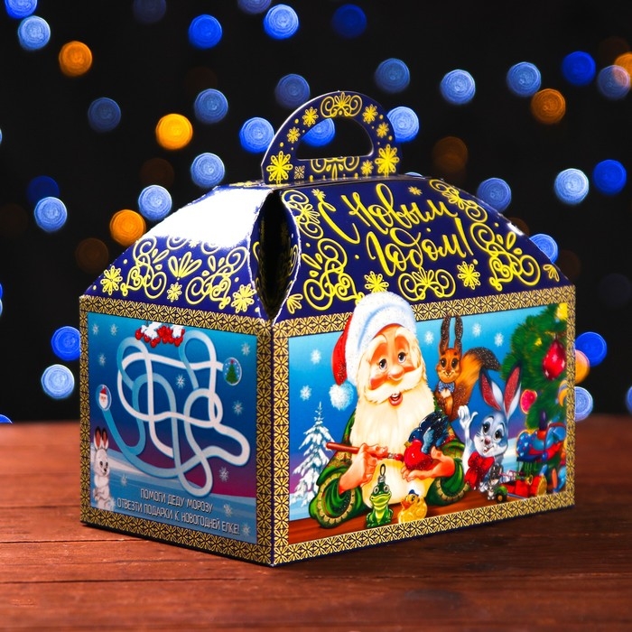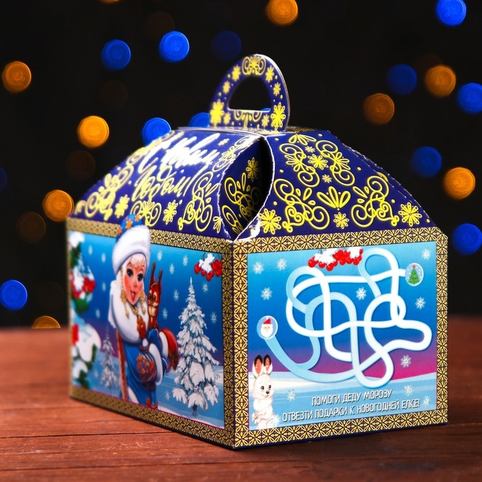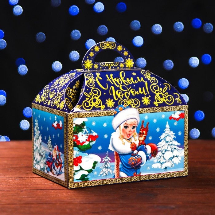 Новый год. Подарочная коробка "Дед Мороз и Снегурочка" 18,5 x 12,5 x 19 см.