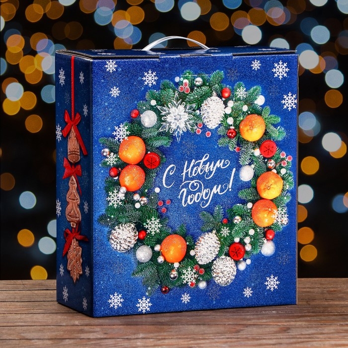 Новый год. Подарочная коробка "Новогодний декор" , 28,5 х 14 х 33 см.