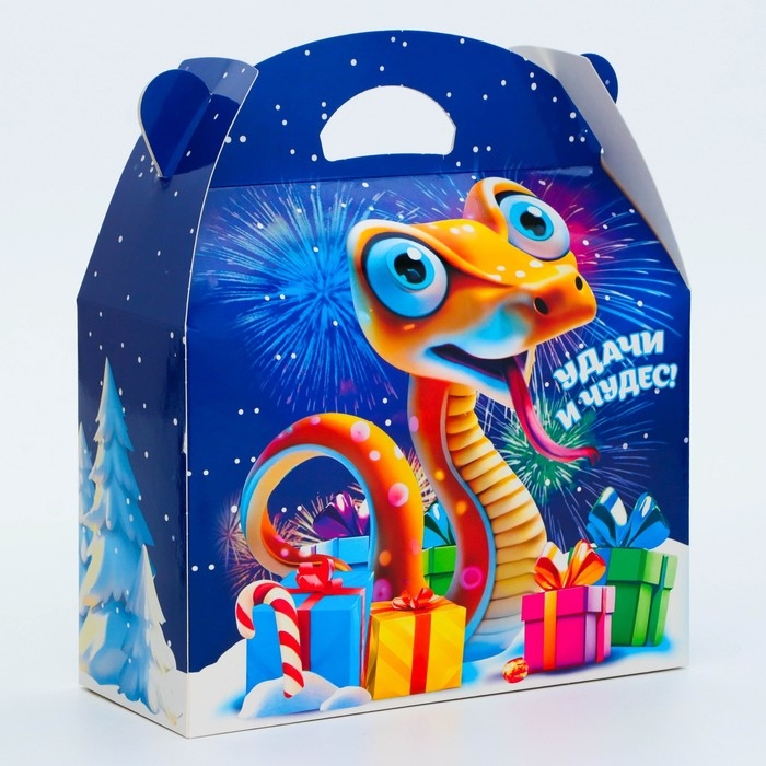 Коробка выполнена из качественных материалов, которые обеспечивают сохранность содержимого. Она имеет яркий и красочный дизайн, который отражает атмосферу Нового года.