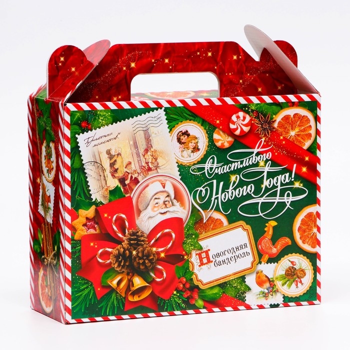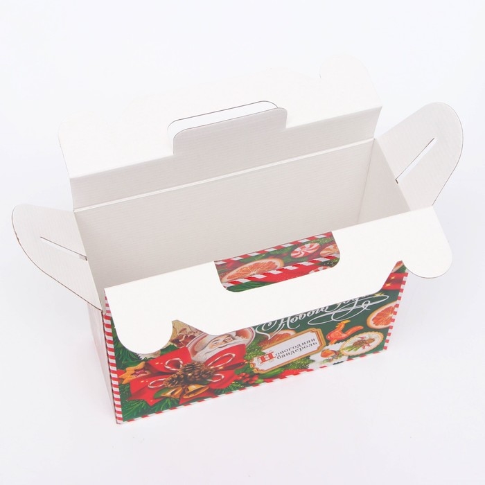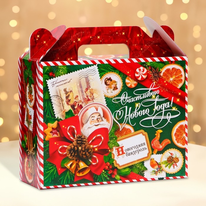 Коробка выполнена из качественных материалов, которые обеспечивают сохранность содержимого. Она имеет яркий и красочный дизайн, который отражает атмосферу Нового года.