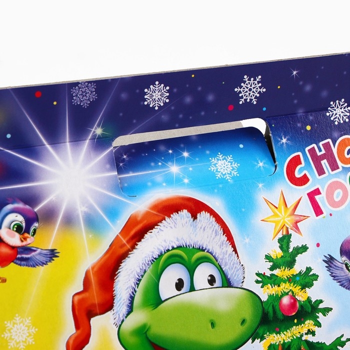 - Коробка выполнена из высококачественного картона, который не только прекрасно удерживает форму, но и гарантирует надёжность и долговечность. Ярко оформленная, она украшена красочными новогодними мотивами. Каждый элемент дизайна продуман до мелочей, чтобы создать ощущение праздника и сказки.