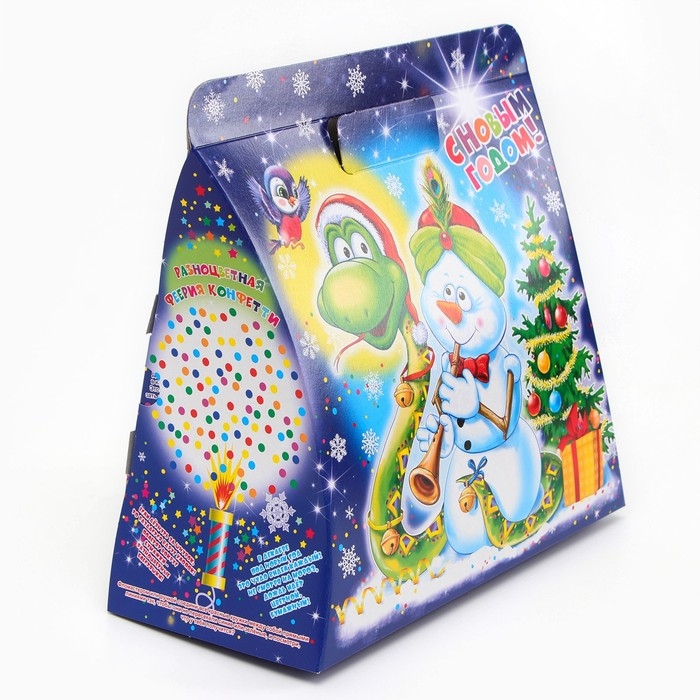 - Одним из главных преимуществ этой коробки является её фигурная форма, что несомненно порадует детей и взрослых. Такая оригинальная упаковка с легкостью привлечёт внимание и создаст настроение, делая её идеальным решением для утренников и новогодних праздников.
