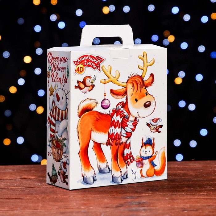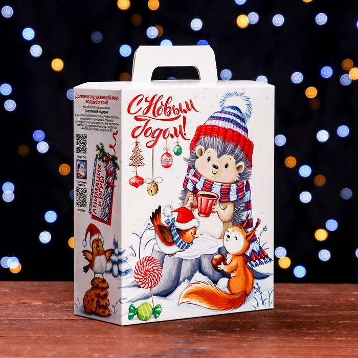 Новый год. Подарочная коробка "Угощение к чаю" , Презент 15,5 х 7 х 19 см.