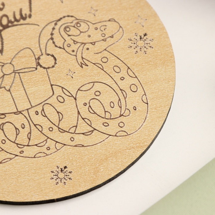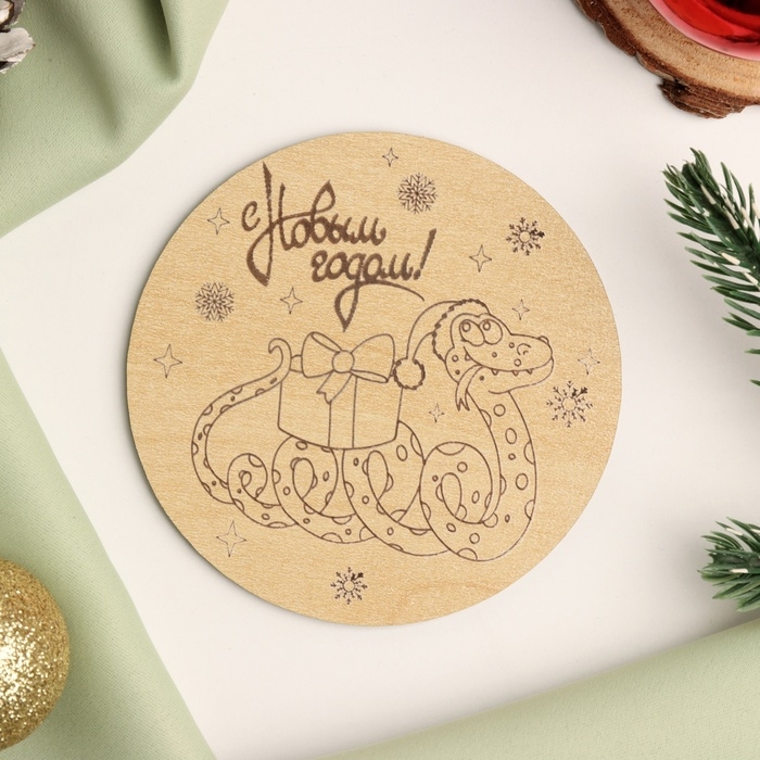 Новый год. Подставка с символом года под горячее "Змейка с подарком", диаметр - 9,5 см