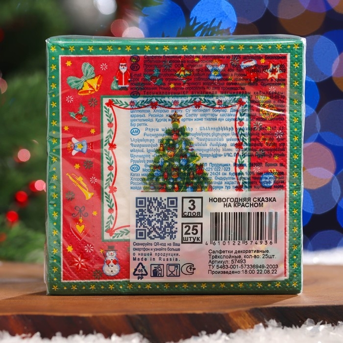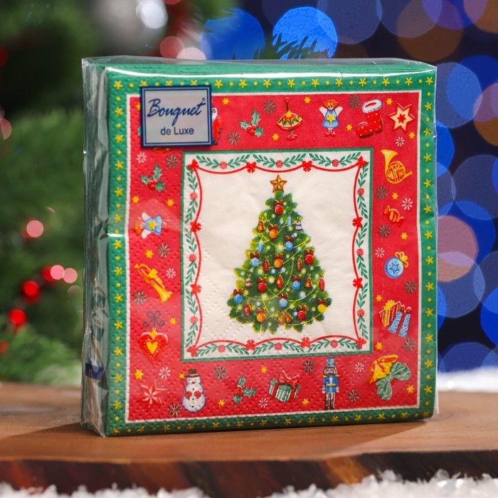 Новый год. Салфетки бумажные Art Bouquet "Новогодняя сказка на красном", 3 слоя, 24x24, 25 листов
