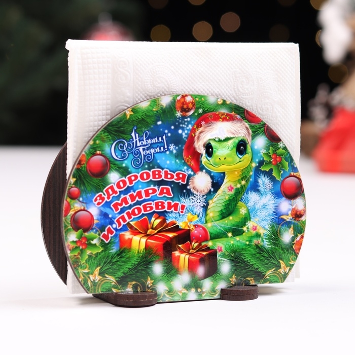 Новый год. Салфетница с символом года №3 "Змейка с подарками", 13х10х5 см
