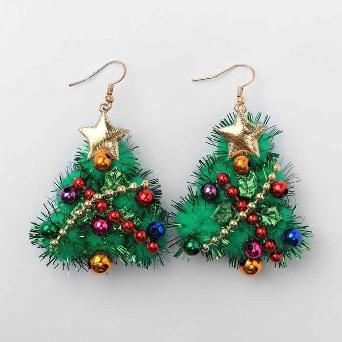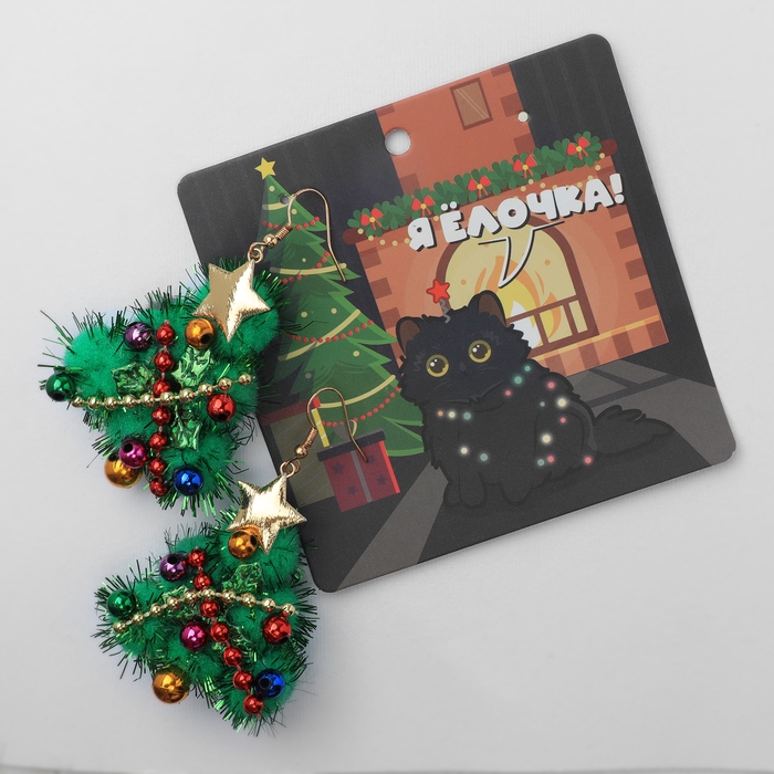 Новый год! Серьги «Новогодние» ёлочка с гирляндой, цветные в золоте