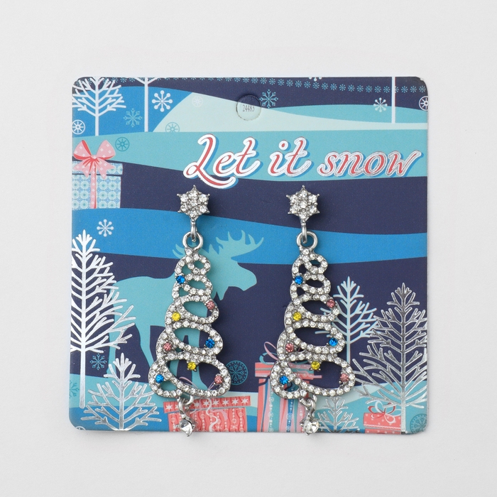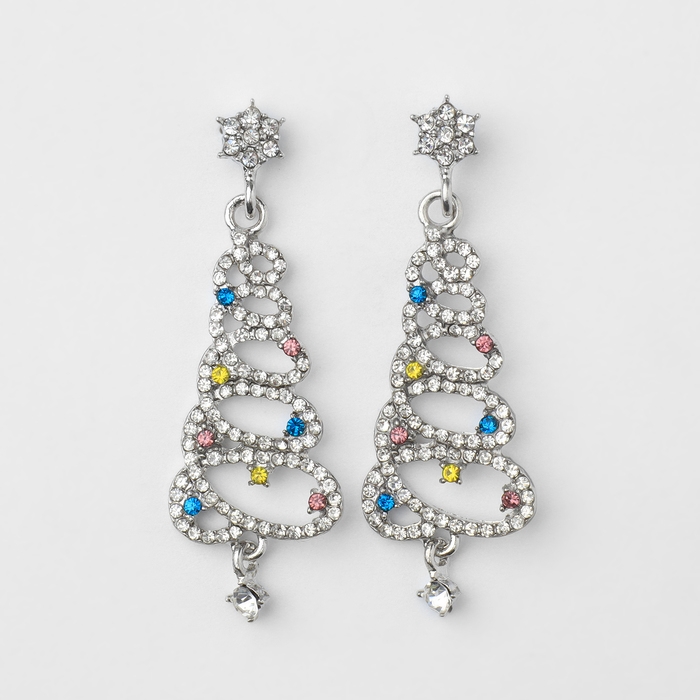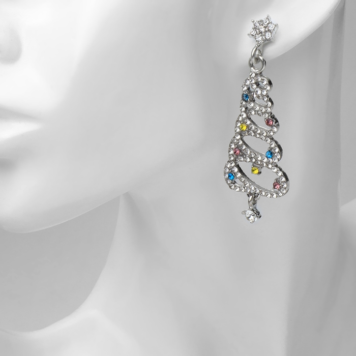 Новый год! Серьги «Новогодние» спираль- ёлочка, цветные в серебре